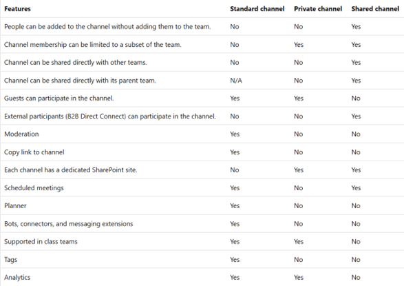 Microsoft Article for Private Channels